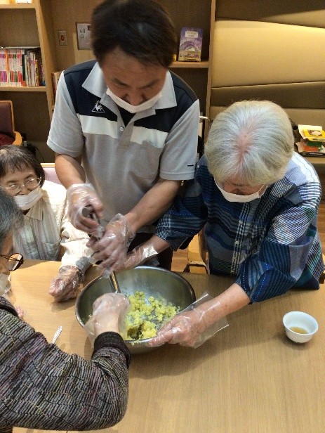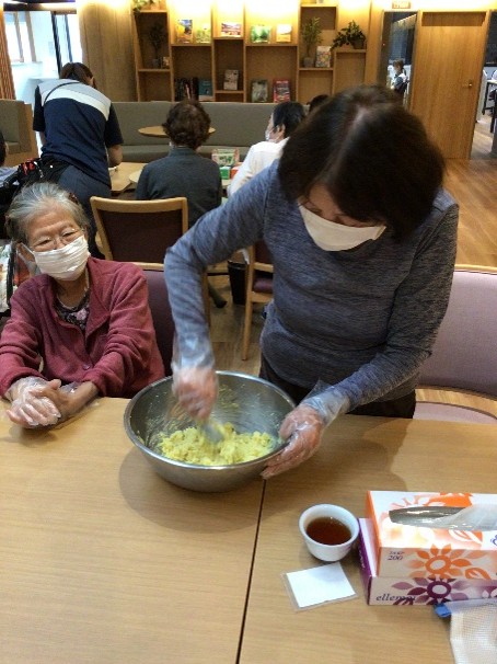 さつまいもを潰して、材料を混ぜて…