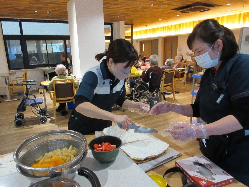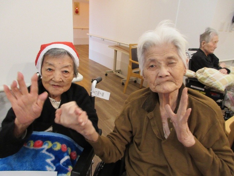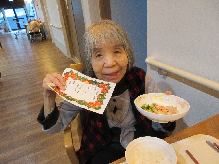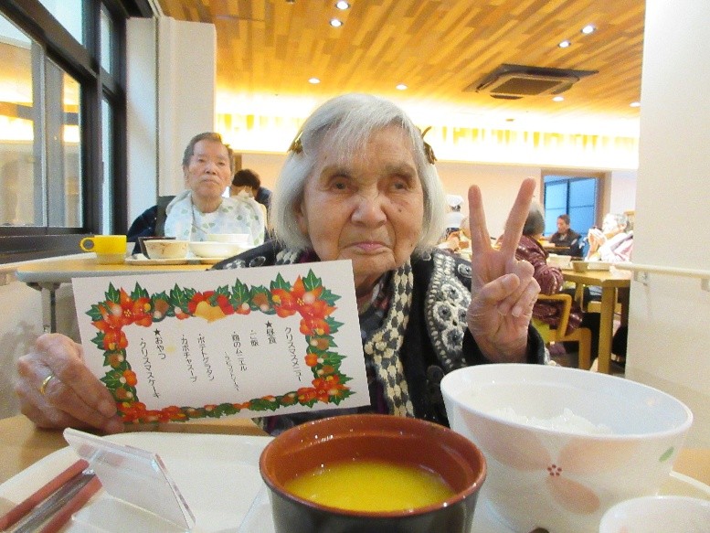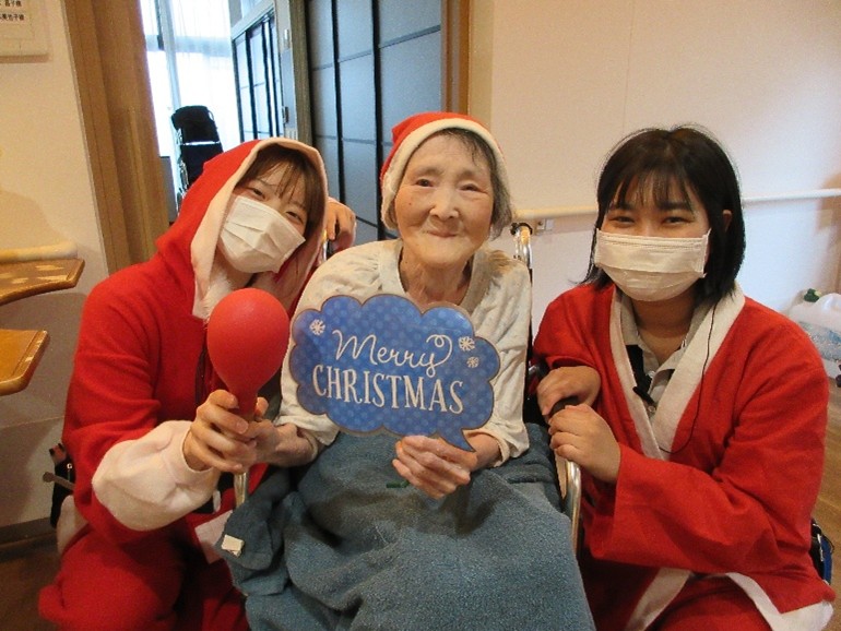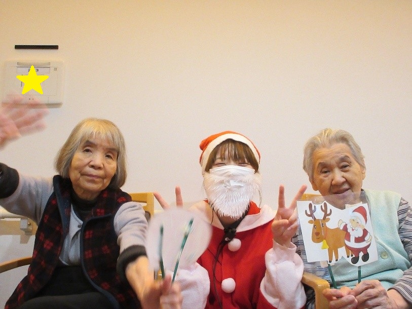 サンタに扮した職員と一緒に記念撮影を行いました(^^♪